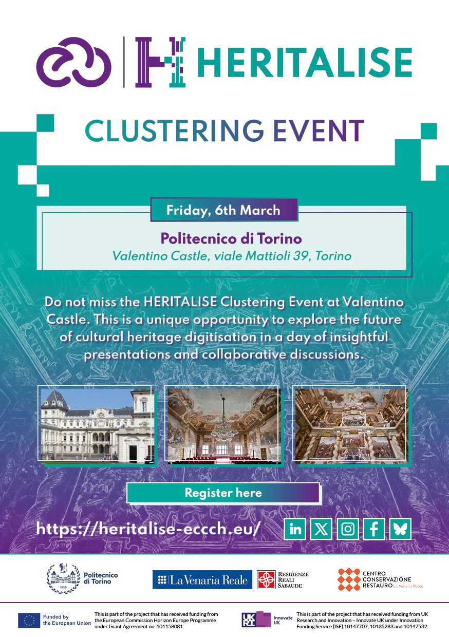 Do not miss the HERITALISE Clustering Event at Valentino Castle. This is a unique opportunity to explore the future of cultural heritage digitisation in a day of insightful presentations and collaborative discussions.
